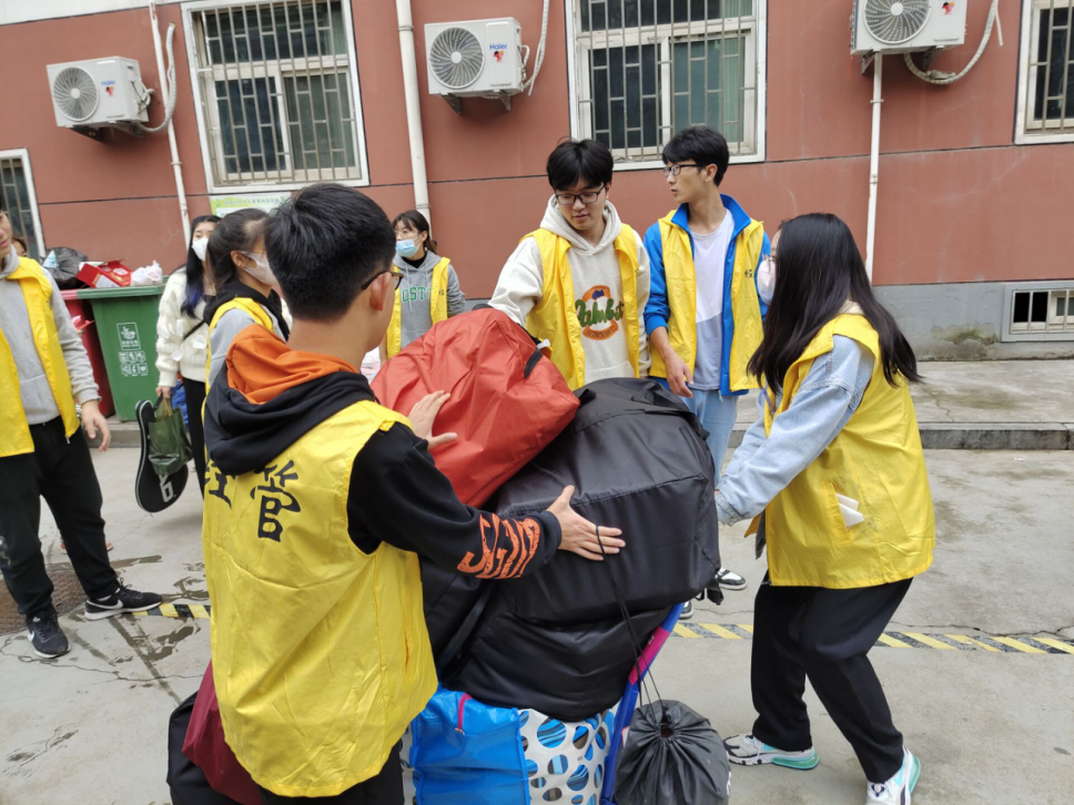 本次搬迁任务时间紧、任务重,但这丝毫没有影响到师生志愿者的热情和干劲。党员师生们前往所负责的学生宿舍,以饱满的热情投入到了紧张有序的搬迁工作中。期间,师生的身影在宿舍楼和货车间来回穿梭,帮助同学将打包好的行李搬运至指定存放点。他们以实际行动诠释了党的无私奉献的服务精神,在实践中回归服务群众的初心,充分体现教师党员、团员青年的先锋模范带头作用,展现出良好的精神风貌,助力搬迁工作的顺利开展。衣服虽然都沾满了尘土,但大家脸上却洋溢着笑容,因为他们感受到了志愿服务带来的快乐和充实,也感受到胸前党徽带来的无穷力量。