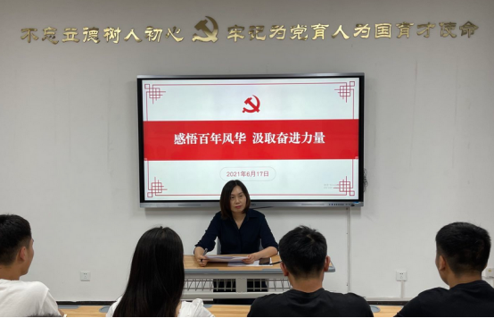 为进一步提高学生党员的政治素质和理论水平,增强对党史的认识和理解,激发广大学生党员的学习热情,并把党史学习教育有效的融入到学生日常学习生活中去。2021年6月17日下午,学校纪委书记陈雅莉同志以“感悟百年风华 汲取青春力量”为主题,为beat365英国官网网站党总支全体学生党员讲了一堂党史学习教育的主题党课。