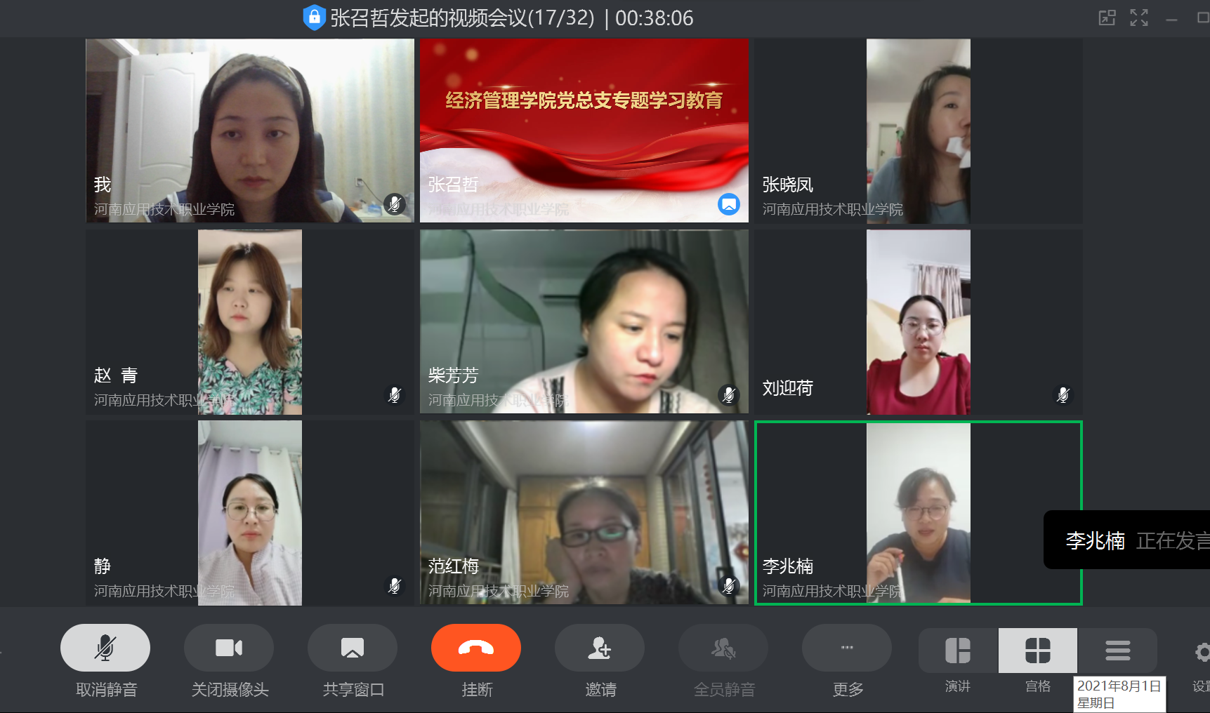 2021年8月1日晚,beat365英国官网网站党总支利用钉钉平台组织全体党员教师召开专题学习教育会议。会议由党总支副书记李兆楠同志主持。