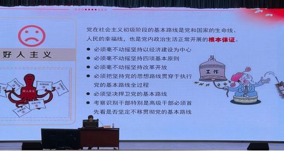 课程开篇,袁清香书记通过习近平总书记关于全面从严治党的重要论述切入主题,并从新理念、新要求、新举措三个方面对严肃党内政治生活的意义进行深入解读。其次,袁清香书记重点分析了《关于新形势下党内政治生活的若干准则》,从党内政治生活的历史经验,新时代旗帜鲜明讲政治的六大着力点、提高政治觉悟和政治能力的路径、“四个服从”的内涵等方面为党员发展对象上了一堂生动的党课,强调作为党员发展对象,要不断提高政治觉悟和政治能力、严守政治纪律和政治规矩这条“生命线”,坚决做到“四个服从”、增强“四个意识”、坚定“四个自信”、做到“两个维护”,永葆党的先进性和纯洁性。