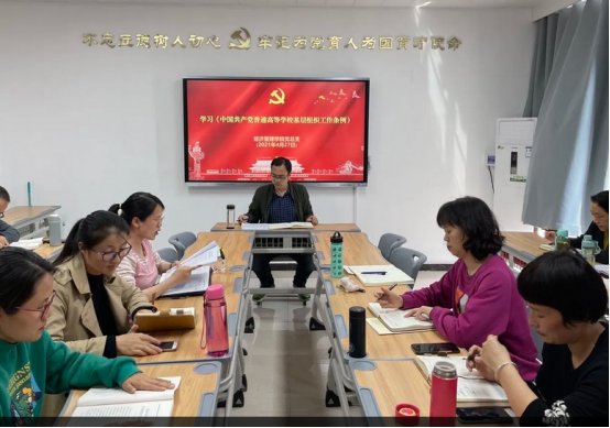 会上,教工支部书记张召哲同志先向大家介绍了《条例》修订的背景及重要意义,通过新旧版本的比对,重点解读了《条例》的修订内容和精神实质。其他党员同志以分章领学的方式,带领全体教职工原原本本、逐字逐句学习了《条例》的内容。《条例》的修订是深入贯彻落实习近平新时代中国特色社会主义思想、贯彻落实新时代党的建设总要求和新时代党的组织路线、坚持和加强党对高等学校全面领导的重要举措。全体党员要结合组织部门业务工作梳理组织工作制度和程序,进一步落实《条例》的各项要求,确保《条例》在院(系)党组织、教职工党支部及学生党支部的贯彻执行。