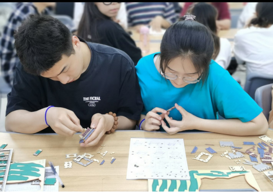 随后,为了建党百年献礼,全体入党积极分子通过做手工寄党情,用制作红船、天安门、天坛等模型表达对党的祝福、对祖国的热爱。