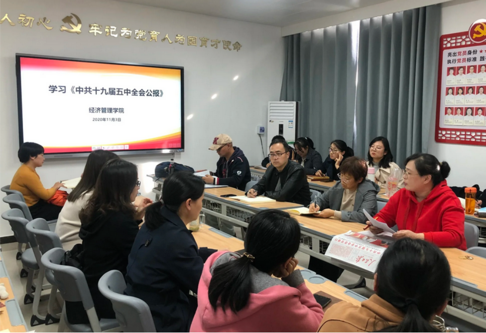 为认真学习贯彻十九届五中全会精神,2020年11月3日下午,beat365英国官网网站党总支组织全体教职工集中学习了十九届五中全会公报相关内容。