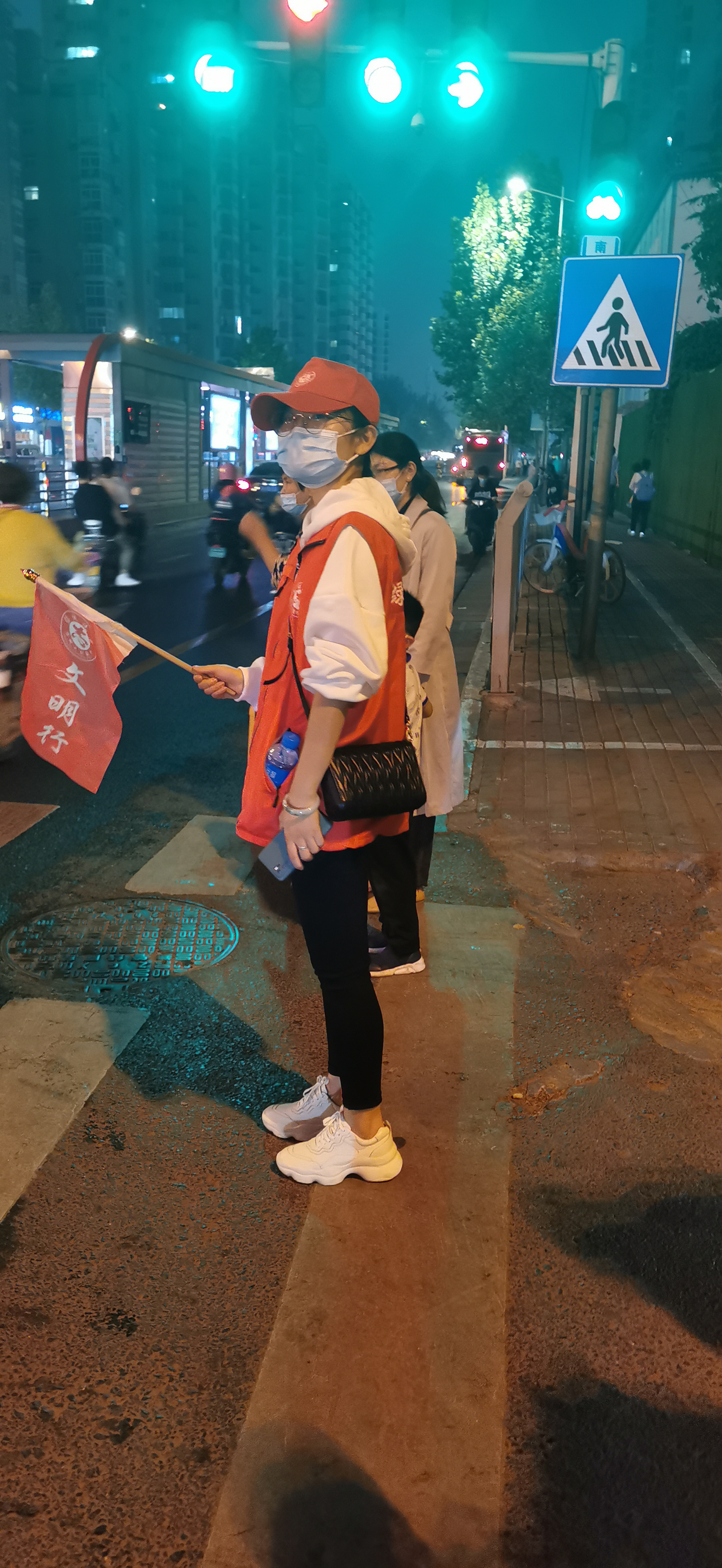 各位志愿者统一着装,身穿红马甲,佩戴小红帽,手持小红旗,在执勤岗位上,认真指挥交通,提醒行人注意交通安全,按照交通信号依次有序通过路口。在川流不息的人群中,身着红马甲的志愿者们俨然成了路边一道亮丽的风景线,大家以高度的社会责任感、昂扬的精神面貌展现了的良好形象。同时,志愿服务也受到了群众们的认可和支持。