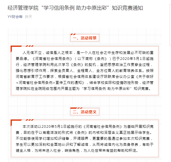 三、开展“学习信用条例 助力中原出彩”知识竞赛
