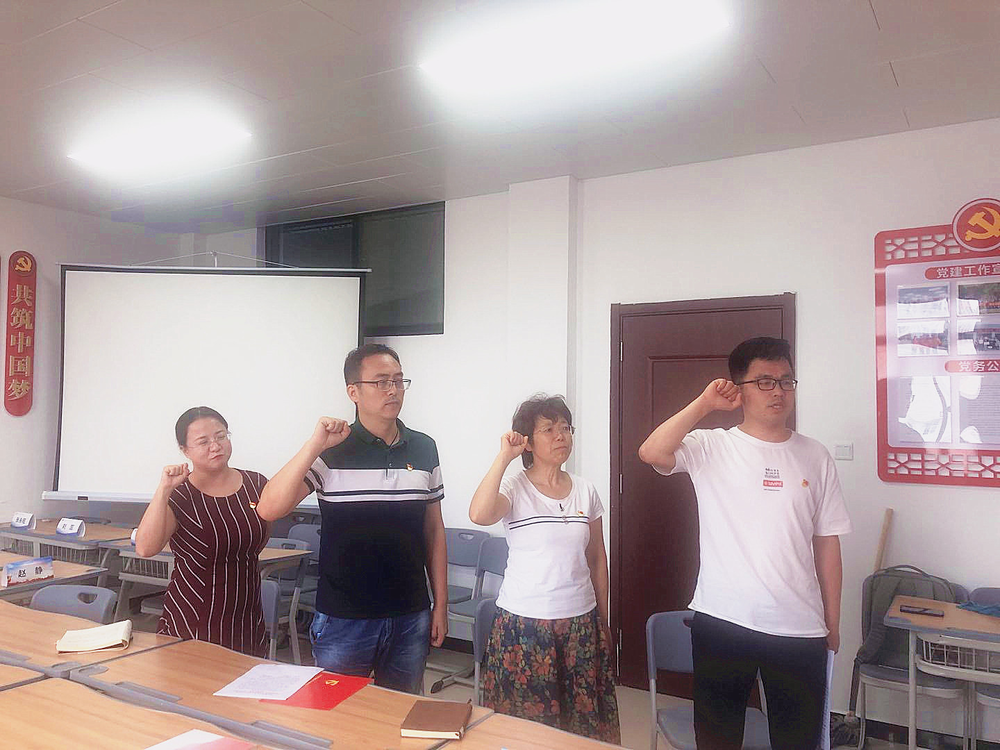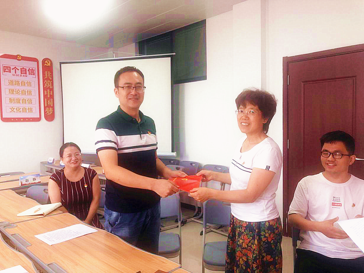 为贯彻落实中共中央印发《关于加强和改进中央和国家机关党的建设的意见》中“严肃党内政治生活”“完善重温入党誓词、入党志愿书以及党员过‘政治生日’等政治仪式”等要求,2020年6月30日下午,beat365英国官网网站教工党支部在学院党员活动室开展了“政治生日”主题党日活动。