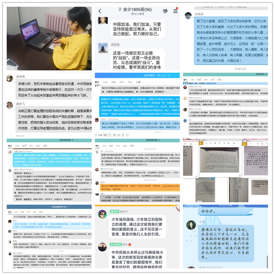 疫情当前,我们不仅仅有医疗战线和国家政府的大力防控,更有高校教育工作者的全军出击,他们日以夜继,白天关注统计学生健康异动情况,晚上继续伏案挑灯备课,挂念着身处各地的学生们,他们是一群可敬之人,更是可爱之人。今日之中国,有着无数身怀大爱的人和职业,他们用满腔的爱国热情在无私的奉献,相信在我党的正确领导下,中国必胜!
