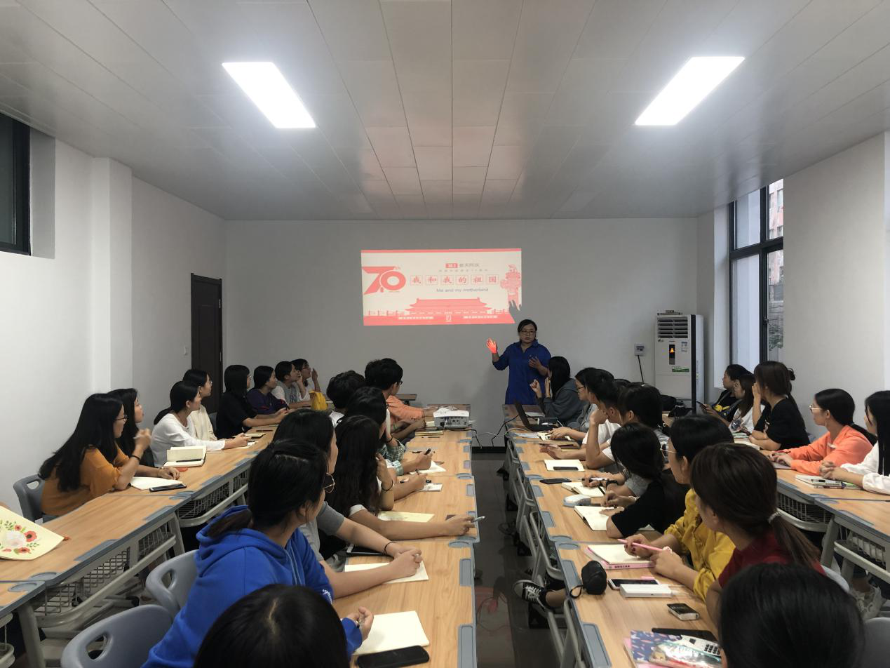 为扎实开展“不忘初心、牢记使命”主题教育,进一步加强大学生爱国主义教育,正值新中国成立70周年之际,beat365英国官网网站党总支学生党支部书记李兆楠,为入党积极分子上了一节题为“我爱我的祖国”主题党课。她倡导当代青年要胸怀理想,志存高远,爱国明志,自信前行。党课分为新中国成立,十一国庆历史由来、七十年光辉历程伟大成就、中国进入社会主义新时代、十大中国爱国主义英雄事迹、追梦新时代奋斗新征程五个部分。李书记结合亲身经历,教育年青人不要仰视西方,也不要俯视西方,要客观公正的平视西方;着重介绍和阐释了中国特色社会主义制度的优越性;作为一个中国人,我们应该自信起来,看到我们国家的繁荣,看到国家的实力,相信我们的国家将日益强大,未来更加美好辉煌。