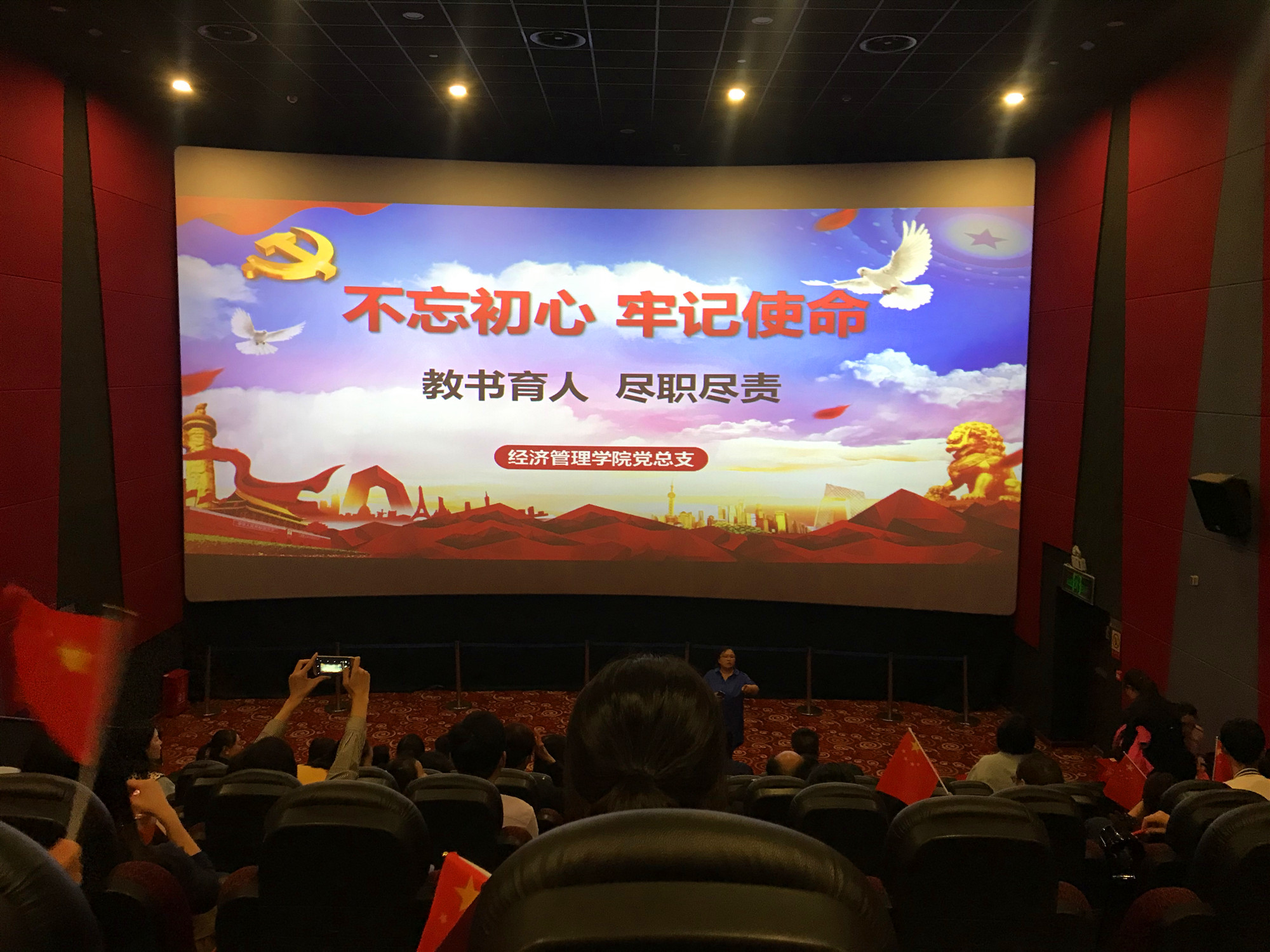 庆祝新中国成立70周年,进一步深化开展“不忘初心、牢记使命”主题教育,充分发挥红色电影资源优势,大力弘扬爱国主义精神,beat365英国官网网站党总支于2019年10月8日组织全体党员及教师进行了“我和我的祖国”观影主题教育活动。