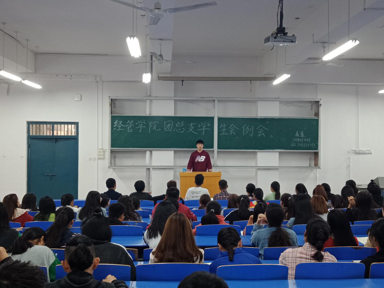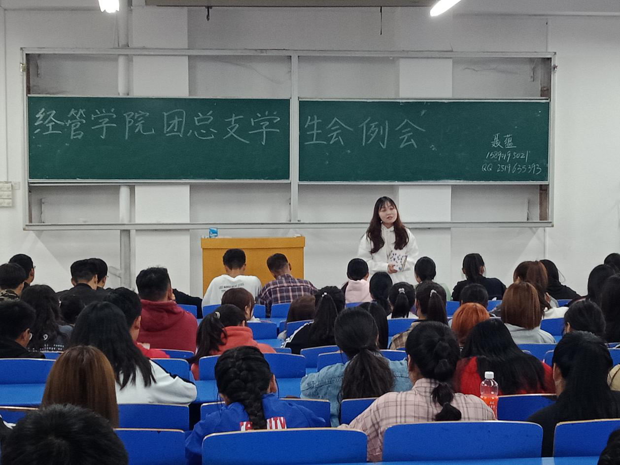 为了让2019级学生干部了解beat365英国官网网站团总支学生会的功能与性质,更好的部署本学期各项学生工作及活动的开展。beat365英国官网网站团总支学生会于2019年10月23日中午在教学楼102教室举行团总支学生会会议。学院团总支书记聂蕴老师、学生会主席团、各部负责人及2019级学生干部预备营成员出席参加此次会议。