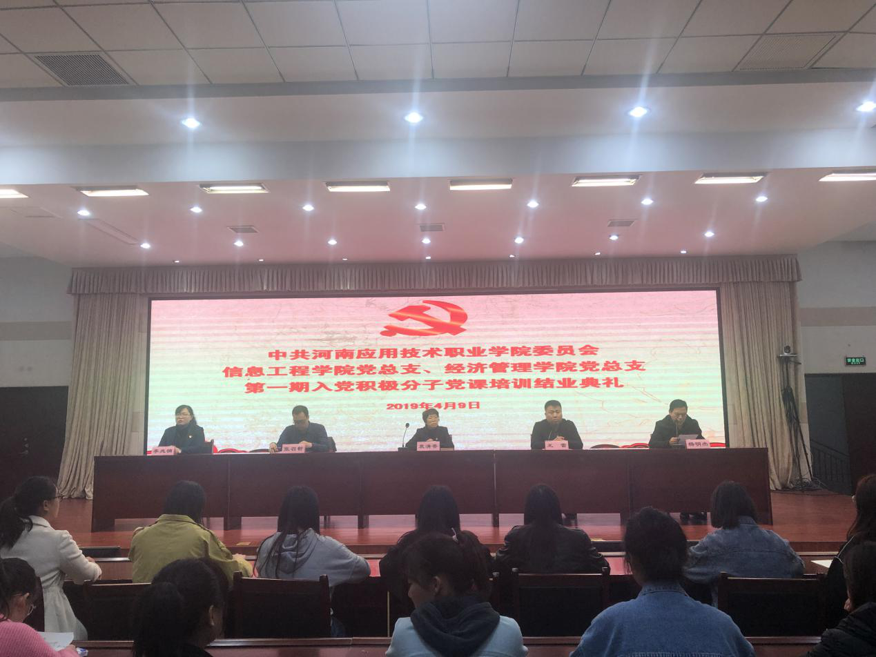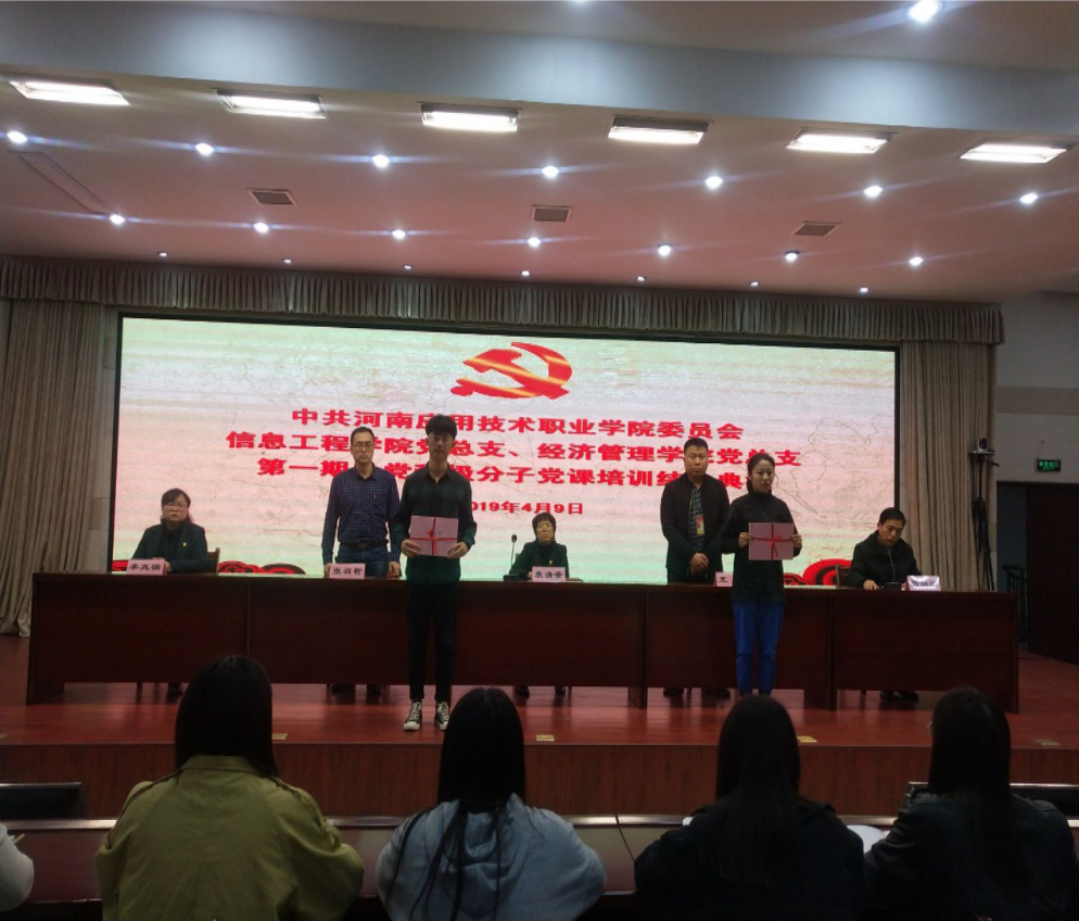 为引导入党积极分子严格以党员的标准要求自己,并坚定自我理想信念,不忘入党初心,继续前行。2019年4月9日14点,beat365英国官网网站党总支联合信息工程学院党总支在实训楼二楼会议室开展了入党积极分子培训结业典礼。本次结业典礼由beat365英国官网网站党总支书记袁清香老师、信息工程学院院长王雷老师、beat365英国官网网站院长张召哲老师、信息工程学院党总支副书记杨明杰老师、beat365英国官网网站党总支副书记李兆楠老师及全体顺利结业的120名入党积极分子参加。
