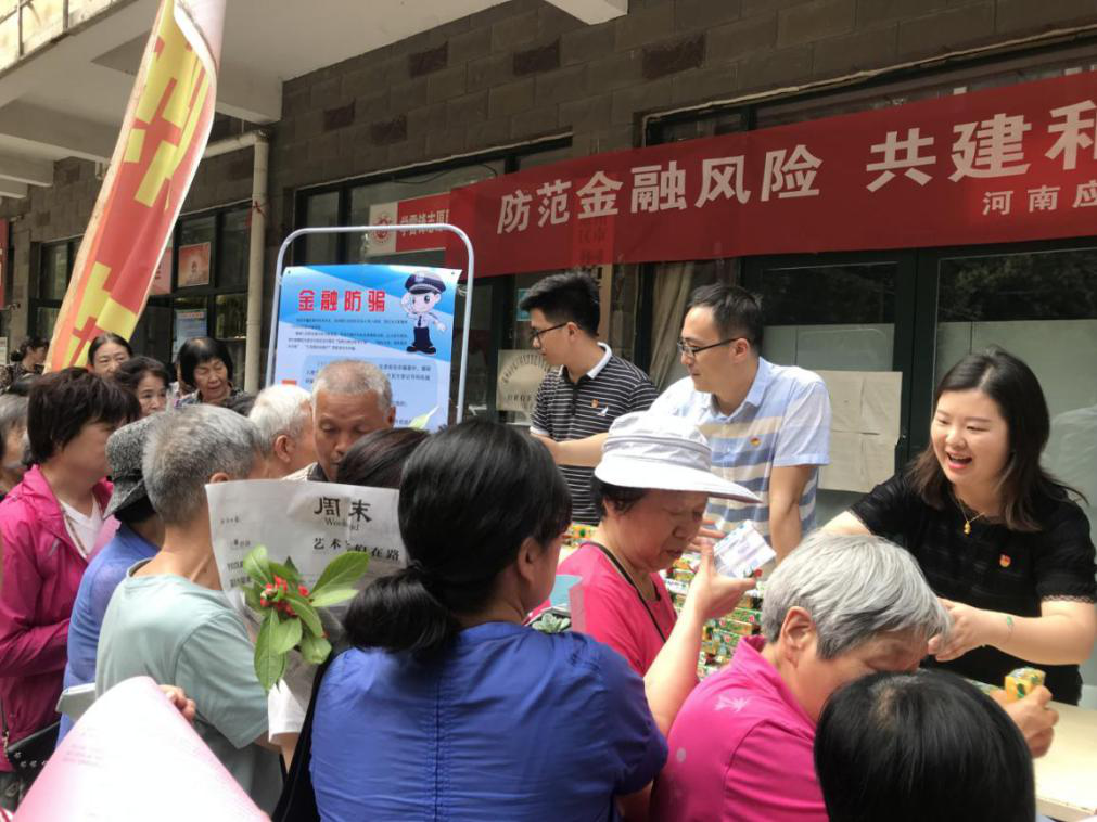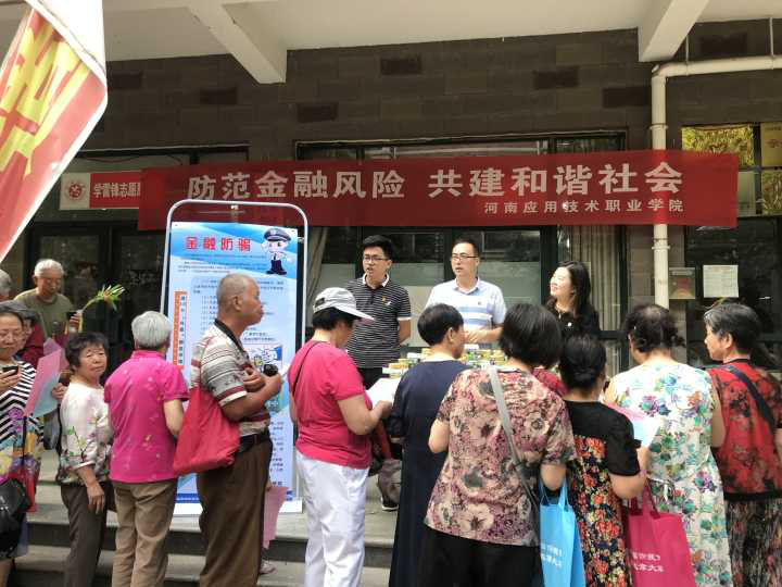 为充分发挥beat365官网党员干部的先锋模范作用,提升社区居民防范金融诈骗意识,2019年5月27日,beat365官网beat365英国官网网站党总支教工党支部的党员志愿者们来到了郑州城开社区,开展了以“防范金融风险共建和谐社会”为主题的精神文明结对共建活动,本次活动得到了城开社区办公室的大力支持。