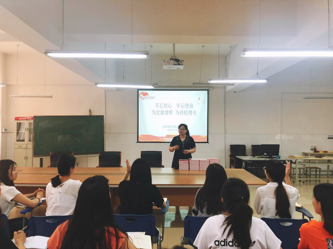 为了进一步加强对优秀毕业生的教育工作,激励毕业生党员在工作岗位上发挥先锋模范带头作用。2019年6月10日,经管学院党总支在实训楼602组织召开了2019届毕业生党员再教育大会。会议由总支组织委员聂蕴老师主持。
