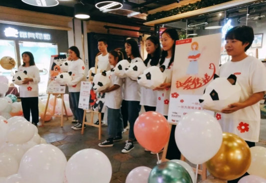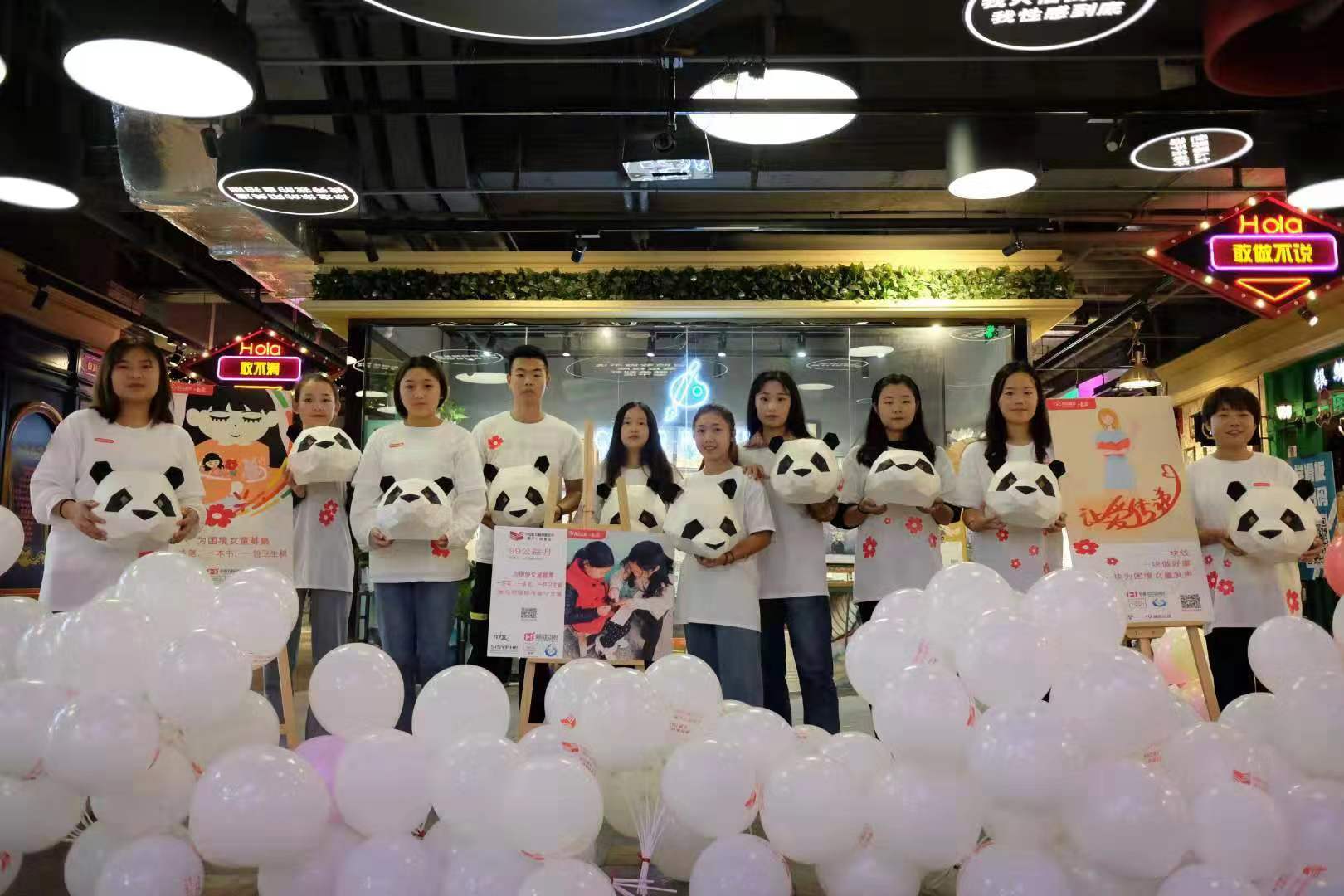 为关爱广大留守儿童,帮助留守儿童健康成长,9月14、15号,正值中秋佳节,万家团圆的日子。一群头戴熊猫面具、身着T恤的beat365英国官网网站的志愿者出现在郑州万象城,向过往行人宣传偏远贫困地区女童的生存状态,并向大家展示他们身上手绘的小红花,“99公益日一起爱”等文字和图案。