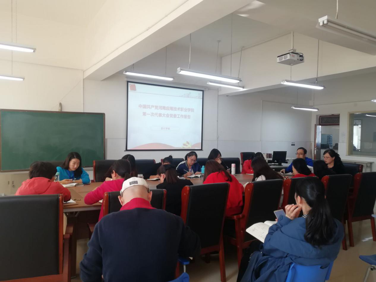中国共产党河南应用技术职业学院第一次代表大会于2018年10月12日顺利召开。会计学院党组织于2018年10月30日组织全体教职工学习 《中国共产党河南应用技术职业学院第一次代表大会党委工作报告》,深入贯彻学习第一次党代会精神,为加快学校建设、为学校振兴积聚力量。