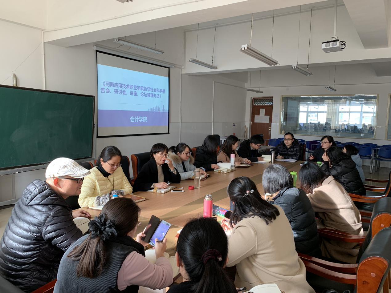 随后,会计学院教职工集体学习了党委下发的《关于在全校深入开展“弘扬爱国奋斗精神建功立业新时代”活动的实施方案》及《河南应用技术职业学院哲学社会科学报告会、研讨会、讲座、论坛管理办法》的通知。全体教职工纷纷表示要积极参加各项活动在新时代自觉弘扬践行爱国奋斗精神,不忘初心、牢记使命。除此之外进一步规范了相关活动管理行为,维护学校正常的教学秩序和活动秩序,保障学生合法权益。会计学院教师通过学习交流,把握学院管理办法的新理念、新内涵、新要求。