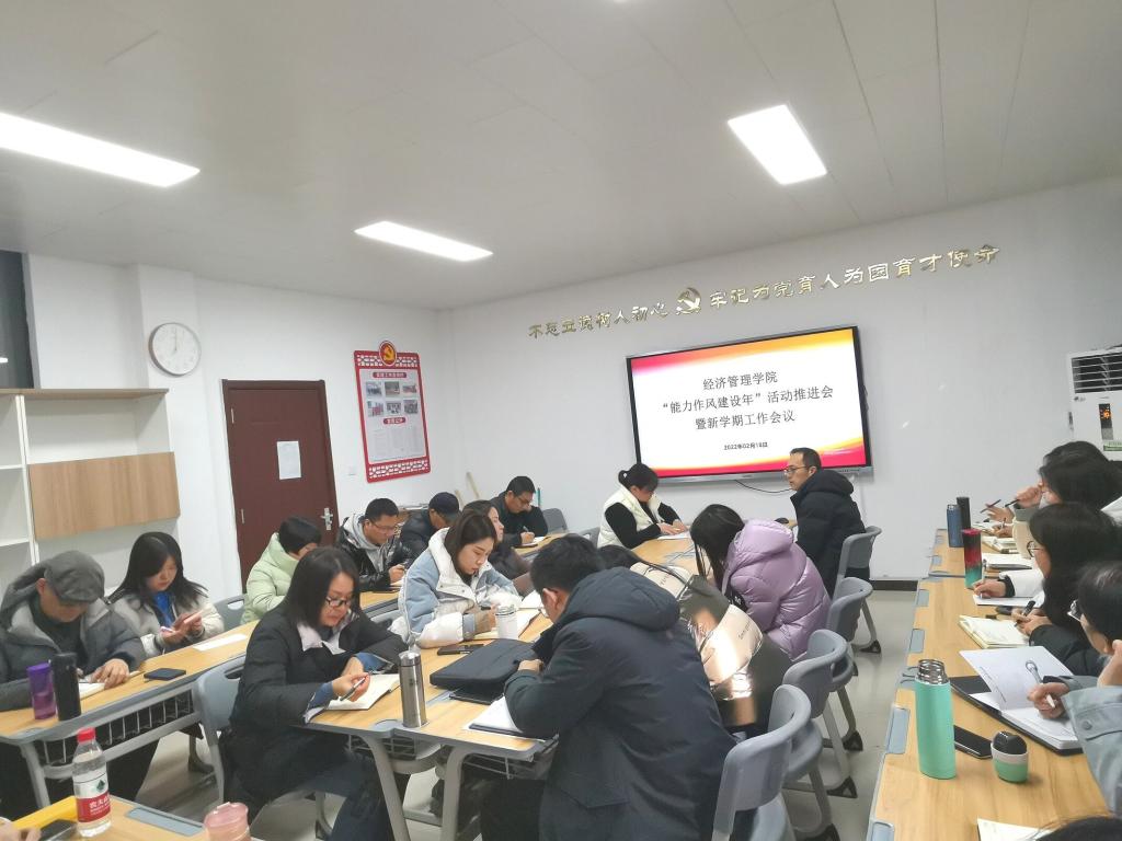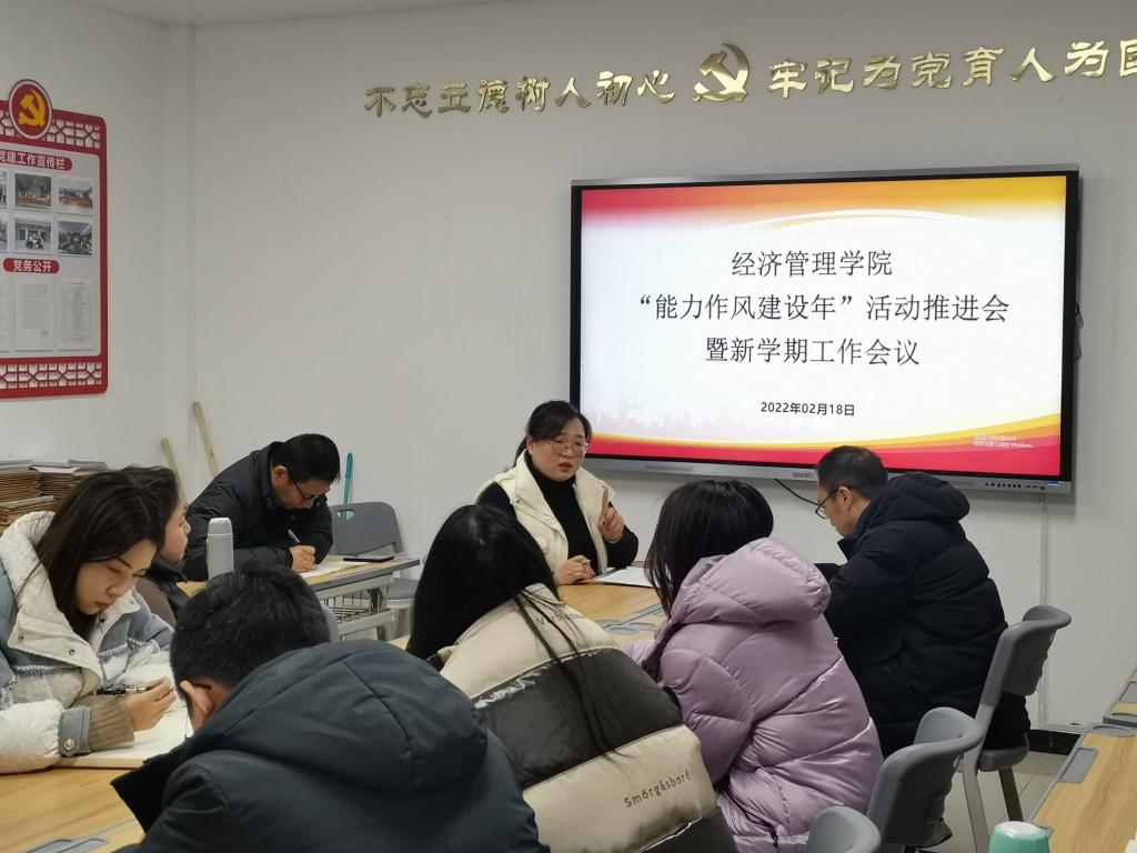 为进一步贯彻落实校党委关于“能力作风建设年”活动要求,深入推进此项工作开展。2022年2月18日,河南应用技术职业学院beat365英国官网网站召开“能力作风建设年”活动推进会暨新学期工作会议,全面推进和安排部署我院“能力作风建设年”活动。会议由党总支书记李兆楠主持,全体教师参加了会议。