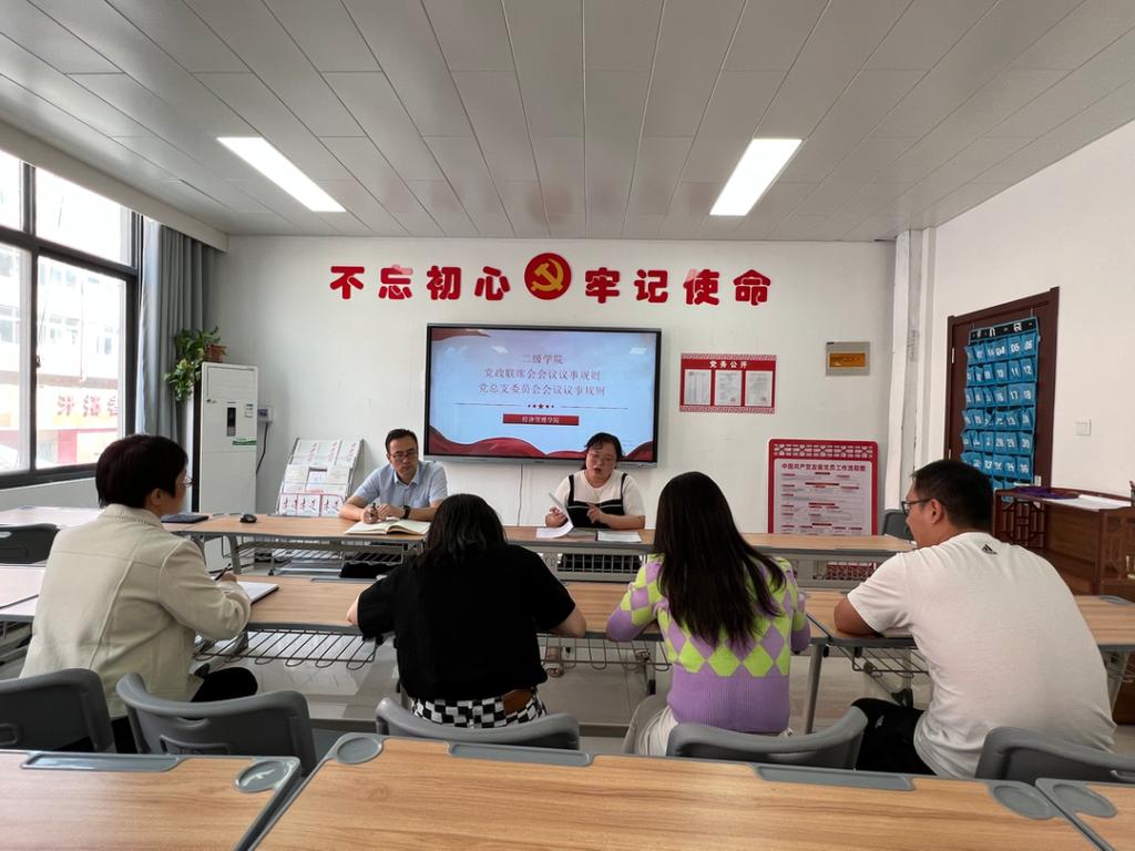 会上,全体党总支委员认真学习《河南应用技术职业学院二级学院党政联席会议议事规则》《河南应用技术职业学院二级学院党总支委员会会议议事规则》两个文件内容。