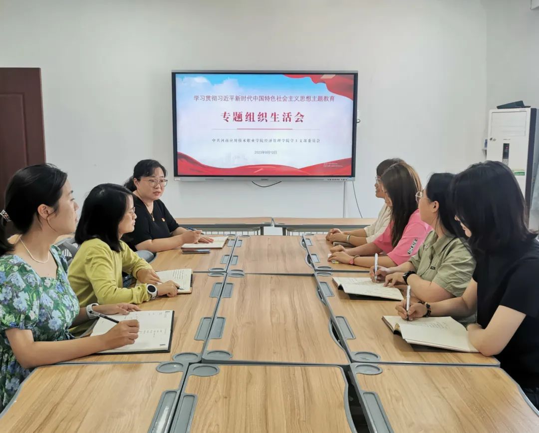 根据《中共河南应用技术职业学院委员会关于召开学习贯彻习近平新时代中国特色社会主义思想主题教育专题组织生活会》通知要求,9月12日下午,beat365英国官网网站党总支学工党支部在郑州校区A505、开封校区B306同时召开主题教育专题组织生活会。支部书记李兆楠主持会议,全体党员参加会议。