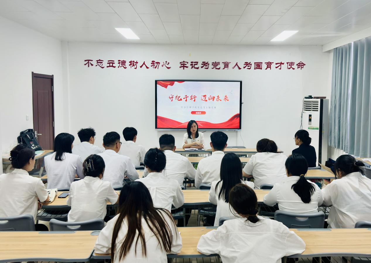 为推动党纪学习教育走深走实,引导毕业生党员学纪、知纪、明纪、守纪,近日,校纪委书记陈雅莉在A505为beat365英国官网网站毕业生党员讲授“守纪于行 迈向未来”专题党课。副书记王盼红主持学习会。