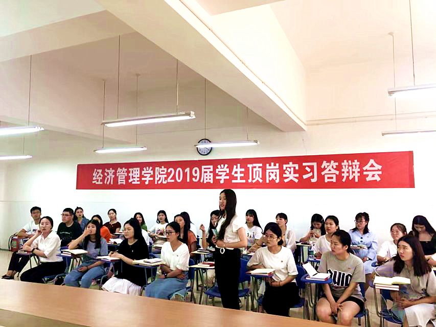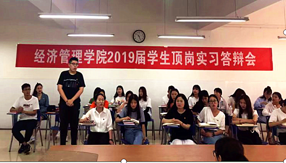 为了检验16级学生一年来的顶岗实习效果、了解学生顶岗实习期间的所学、所悟和所想,2019年6月10日上午,beat365英国官网网站在E602教室举办了2019届毕业生顶岗实习答辩会。本次会议由beat365英国官网网站院长张召哲、会计教研室主任张梨花和金融教研室主任赵静老师和30名学生代表参加,由beat365英国官网网站团总支书记聂蕴老师组织安排。