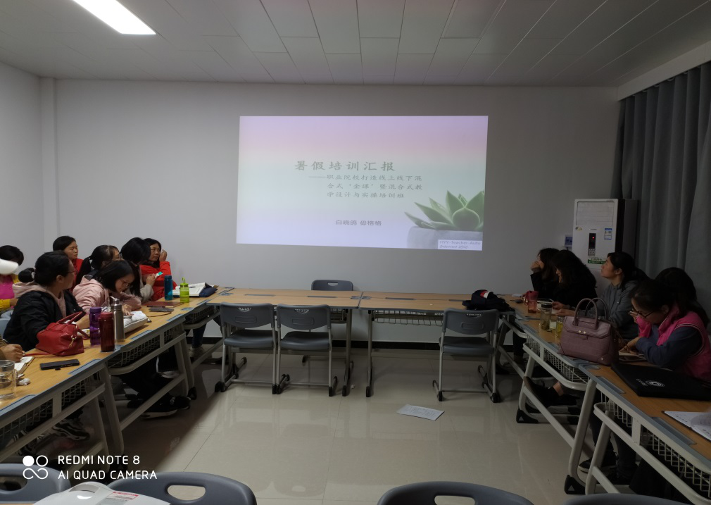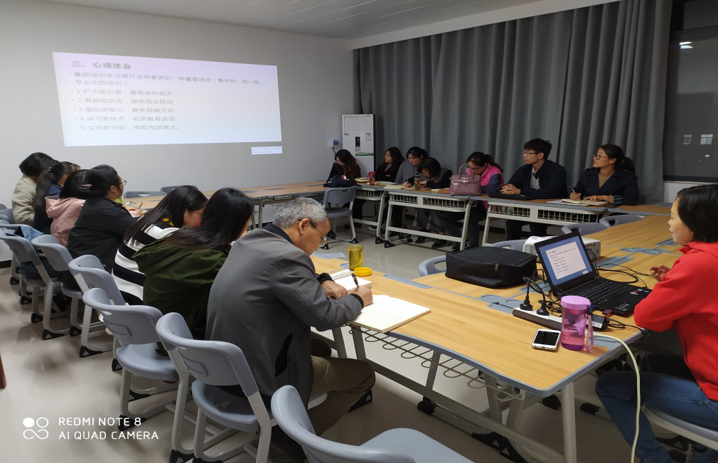 10月22日18:00,beat365英国官网网站全体专兼职教师在办公楼505进行暑期教师培训汇报暨交流研讨。暑期学院共派出9人参加国培、省培、校培共5个项目的培训,通过暑期培训,教师的素质能力得到很大提升。