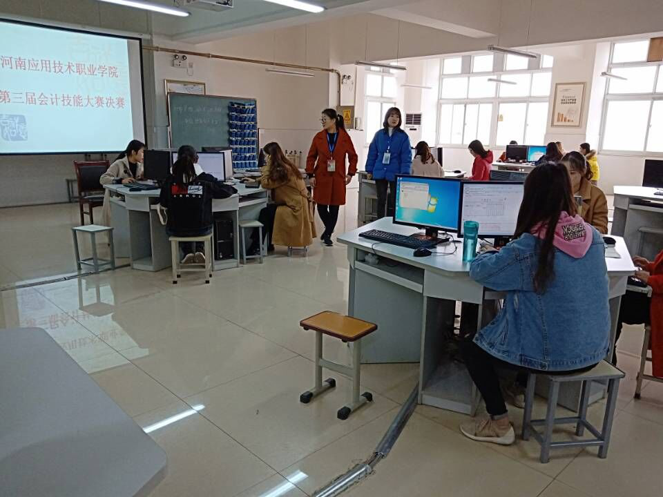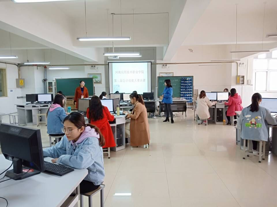 2018年11月17日下午,由河南应用技术职业学院主办会计学院承办的第三届“会计技能大赛”圆满落幕。本次大赛在学校大力支持和会计学院张召哲院长的指导下,由张梨花、张晓凤两位老师指导,在会计实训室E616如期举行。本次技能竞赛既是对学生会计知识和技能的考验,也是对会计专业教学成果的检验,旨在通过院内比赛,为今后参加校外技能大赛总结经验,达到“以赛促学、以赛促训、以赛促赛”的目的,以期更好地推进专业建设、提升课程教学效果。