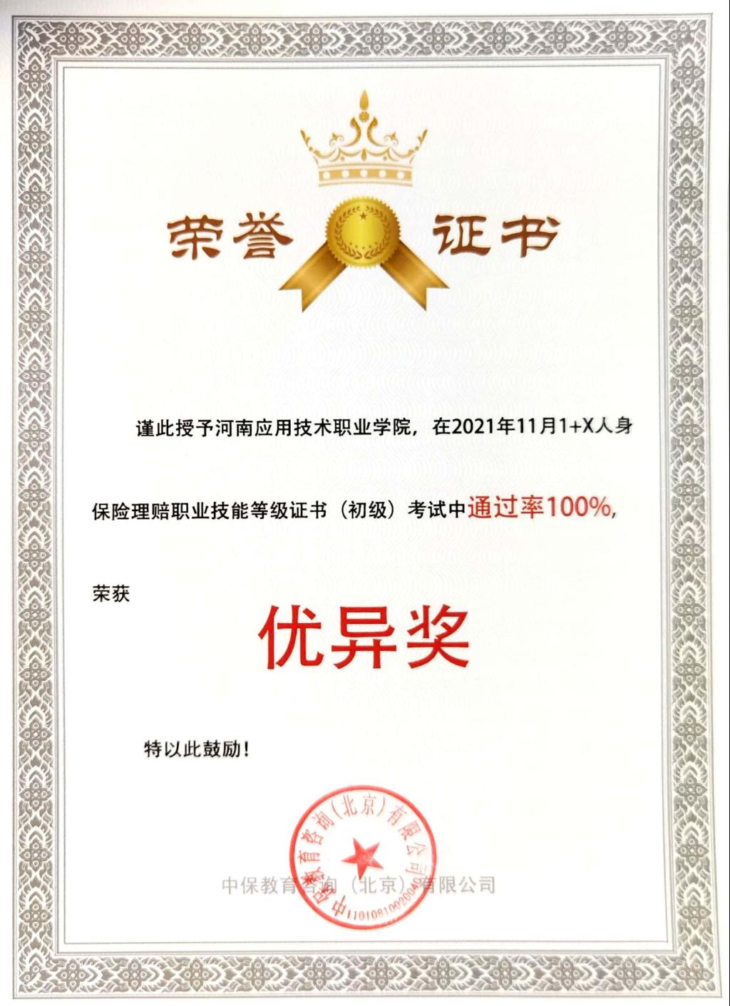 beat365官网作为河南省“1+X”人身保险理赔职业技能等级证书试点院校,beat365英国官网网站全体教师不仅利用课上时间开展培训,而且还利用课下及周末的时间激进型线上线下辅导,多次组织金融服务与管理专业学生进行模式考试,通过3个月师生的共同努力,最终在11月13日上午的初级考试中取得获证率100%的好成绩,并荣获优异奖。同时,beat365英国官网网站赵静老师、刘丹花老师获得“1+X”人身保险理赔职业技能等级证书的优秀辅导教师。