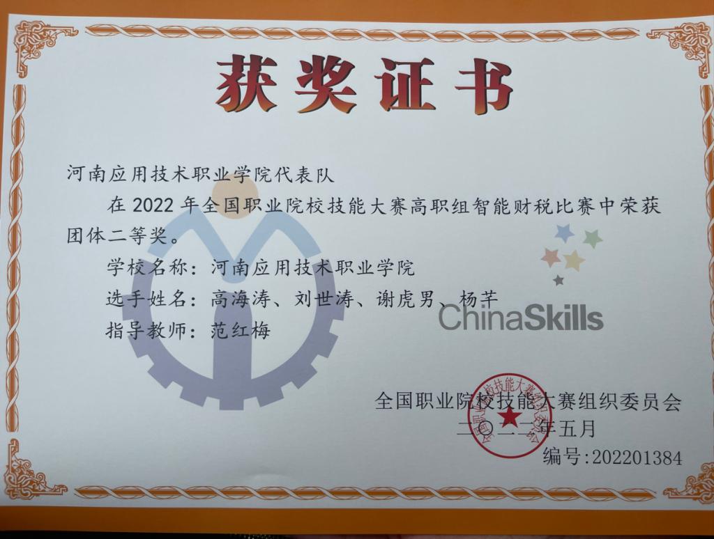 2022年8月22至23日,全国职业院校技能大赛(高职组)智能财税赛项在广东水利电力职业技术学院举行。本次竞赛共有来自全国57个参赛队的228名参赛选手参加,beat365官网beat365英国官网网站学子杨芊、高海涛、刘世涛、谢虎男四位同学在指导教师范红梅的精心指导下,不畏苦累、奋勇拼搏,最终斩获二等奖,实现了beat365官网财会类专业国家级技能大赛成绩新突破。