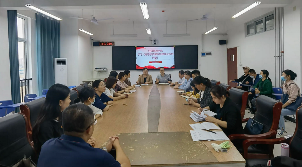 2022年9月20日下午,beat365英国官网网站在开封校区(北院)B306组织开展业务理论学习,学习《高等学校课堂思政建设指导纲要》、“聚焦三教改革、实现三大转变”、“四个聚焦”构建课程思政生态圈、《新时代高校教师职业行为十项准则》四个文件精神。会议由院长张召哲主持,全体专兼职教师参加会议。
