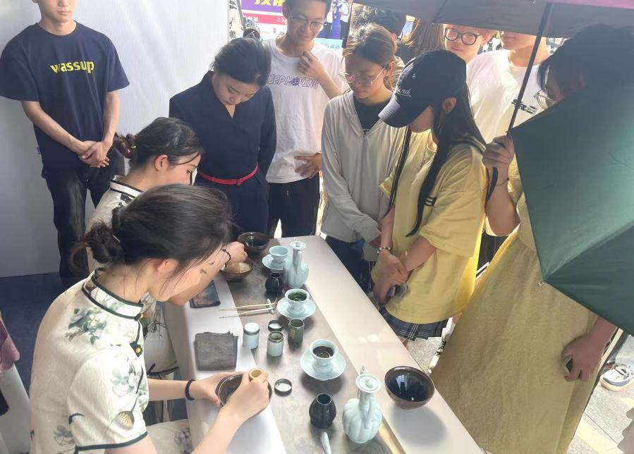 茶艺展示让同学们领略了中华茶文化的博大精深。同学们在现场表演了宋代点茶艺术并讲解了茶文化的历史渊源和内涵。大家在品茗过程中,不仅感受到了茶香的独特魅力,也加深了对传统文化的理解和尊重。