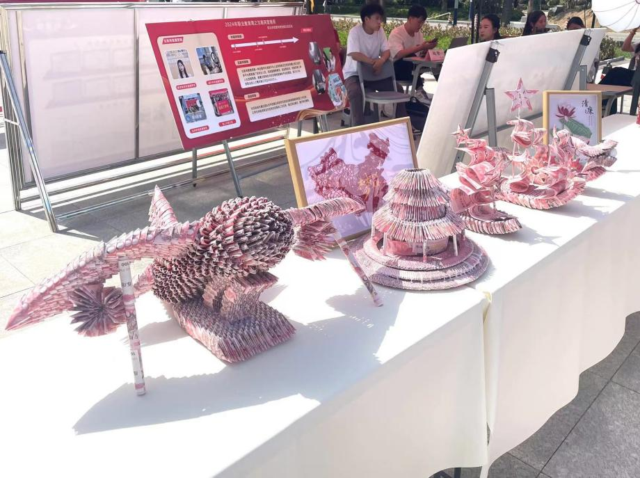 点钞券折纸展示环节同样精彩纷呈。学生们将普通的点钞券经过巧手折叠,变身为形态各异的艺术品,既有传统的折纸造型,也有富有创意的现代设计。这些作品不仅展示了学生们的巧思妙想,也体现了他们对专业技能的熟练掌握和灵活运用。