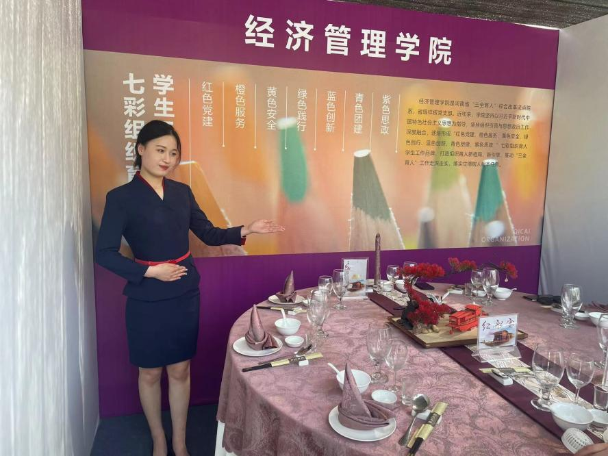 5月13日,河南应用技术职业学院2024年职业教育活动周正式拉开帷幕。经管学院本次职教周以一技在手一生无忧”为主题,通过一系列丰富多彩的活动,全面展示了经管学子的专业素养和实践能力。其中,会计科目扑克比赛、青春向党点钞券折纸展示、宋代点茶表演以及酒店管理摆盘艺术等精彩环节吸引了众多师生的关注。