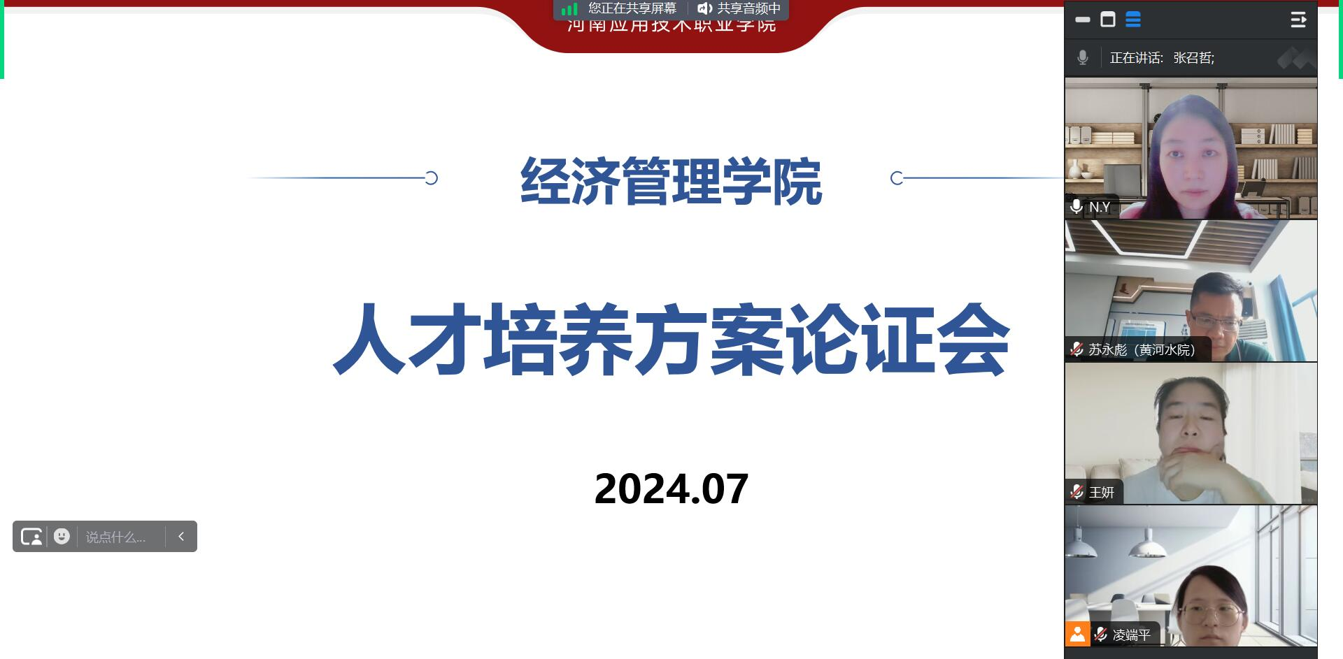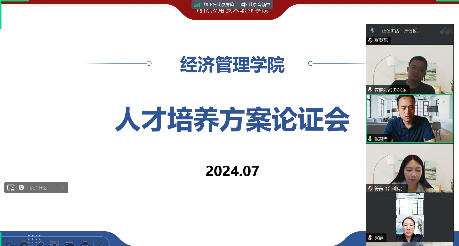 为进一步提高人才培养方案编制工作的科学性和规范性,构建与学校发展目标相适应的人才培养体系,做好人才培养的顶层设计,切实提高人才培养质量。7月初,beat365英国官网网站就启动了2024级人才培养方案修订工作。7月27日学院邀请省内外院校及行业企业专家开展了人才培养方案专家论证会,对beat365英国官网网站五个专业的人才培养方案分组开展论证。来自深圳职业技术大学、台州科技职业学院、黄河水利职业技术学院、安徽商贸职业技术学院、郑州旅游职业学院的校外专家教授以及浙江绿城集团、河南省那些人贸易有限公司的企业专家应邀参加论证。beat365英国官网网站院长张召哲、教研室主任、专业负责人等相关人员参加了会议。论证会由学院副院长聂蕴主持。