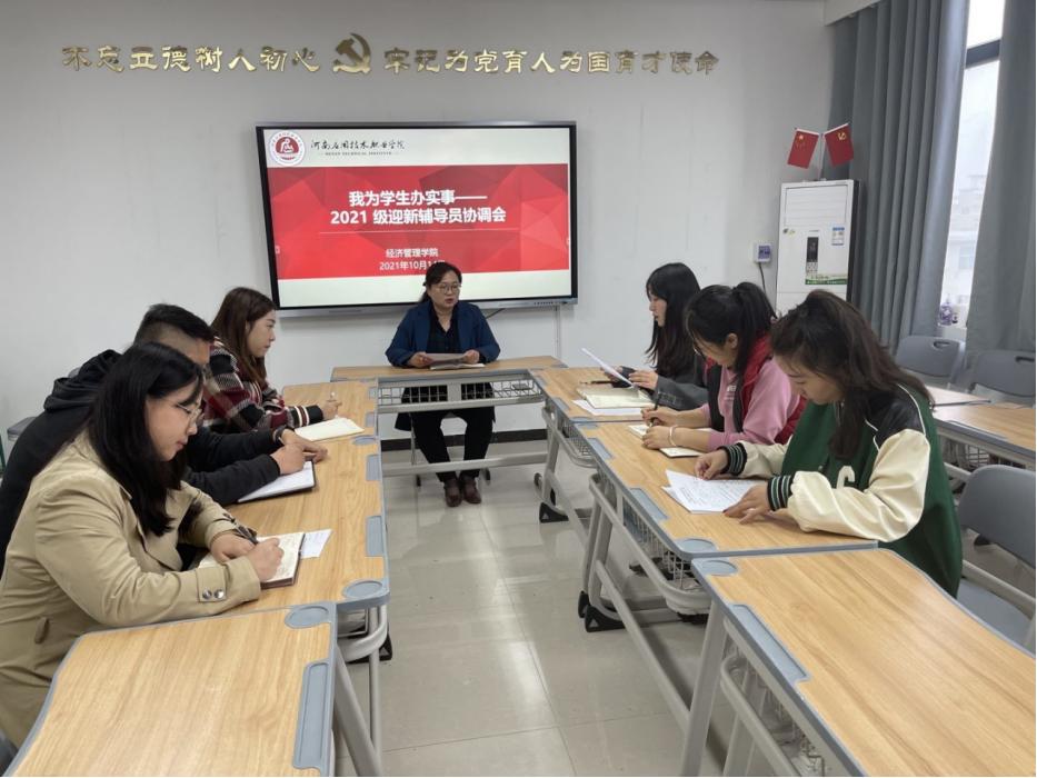 10月14日下午,beat365英国官网网站在办公楼505召开2021级迎新辅导员协调会。beat365英国官网网站全体新生辅导员参加会议,会议由团支书书记聂蕴主持。