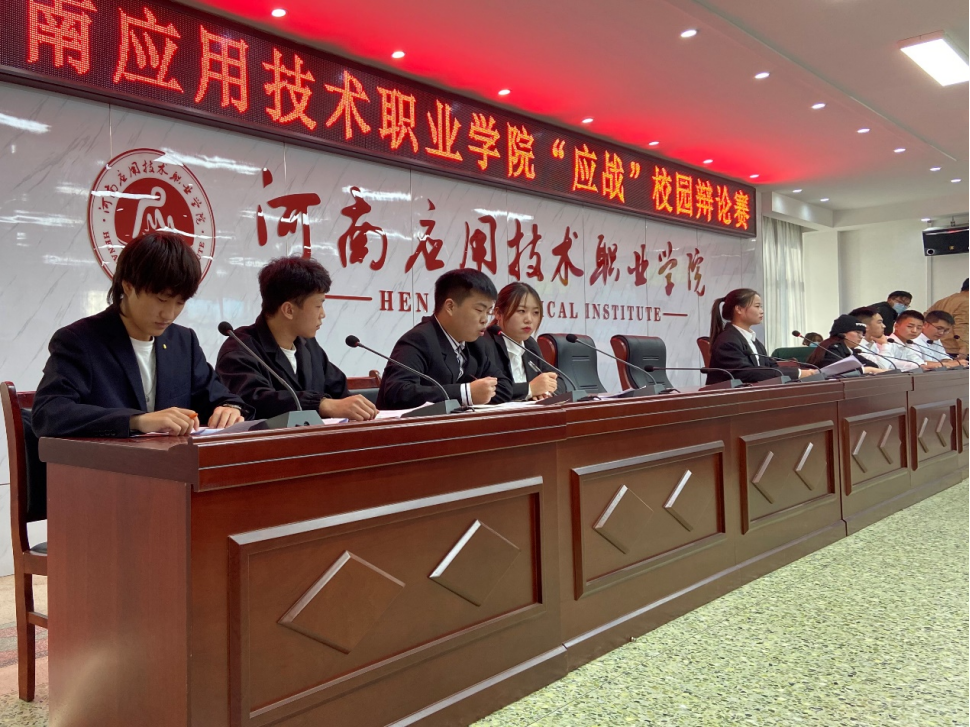 为加强大学生的口才能力培养和锻炼,丰富同学们的课余生活,活跃校园气氛,促进院系之间的交流沟通,beat365英国官网网站辩论赛队于2021年11月9日在D楼六楼会议室参加河南应用技术职业学院“应战”辩论赛八进四复赛。