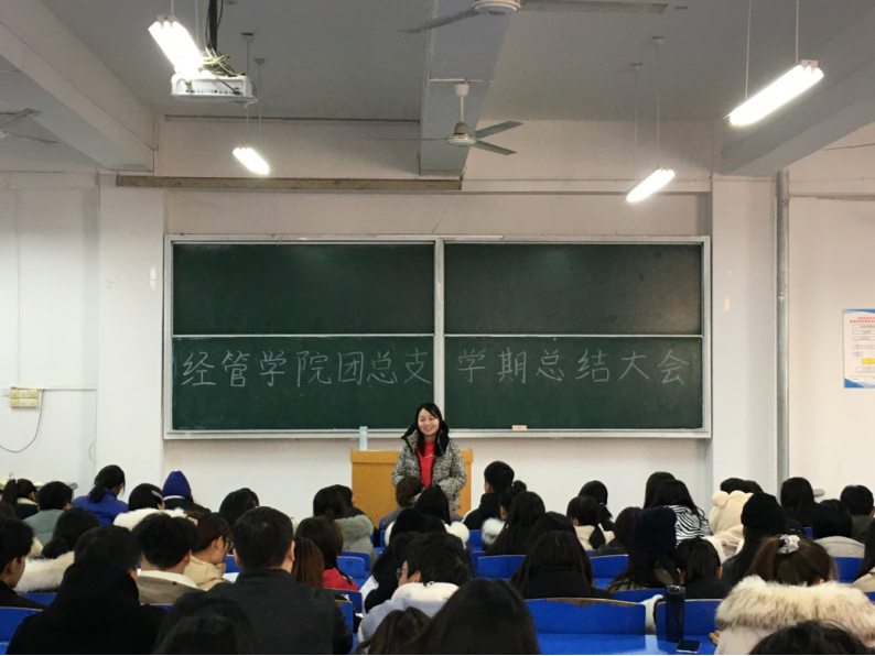 随后,团总支书记聂蕴老师对本学期经管学院团总支学生会的工作进行了总结,对各部门的辛苦付出与工作成绩表示了肯定,同时,也分别对各个部门进行了指导,提出了在未来需要继续改进和完善的地方。聂老师以实际事例举例,让大家明白,作为一名学生干部,需要有正确的自我定位与认知,肯踏实干事,肩负起应有的责任与使命,以“风物长宜放眼量”的心态去做好未来的每一件事,以崭新昂扬的面貌开展新一年的工作。