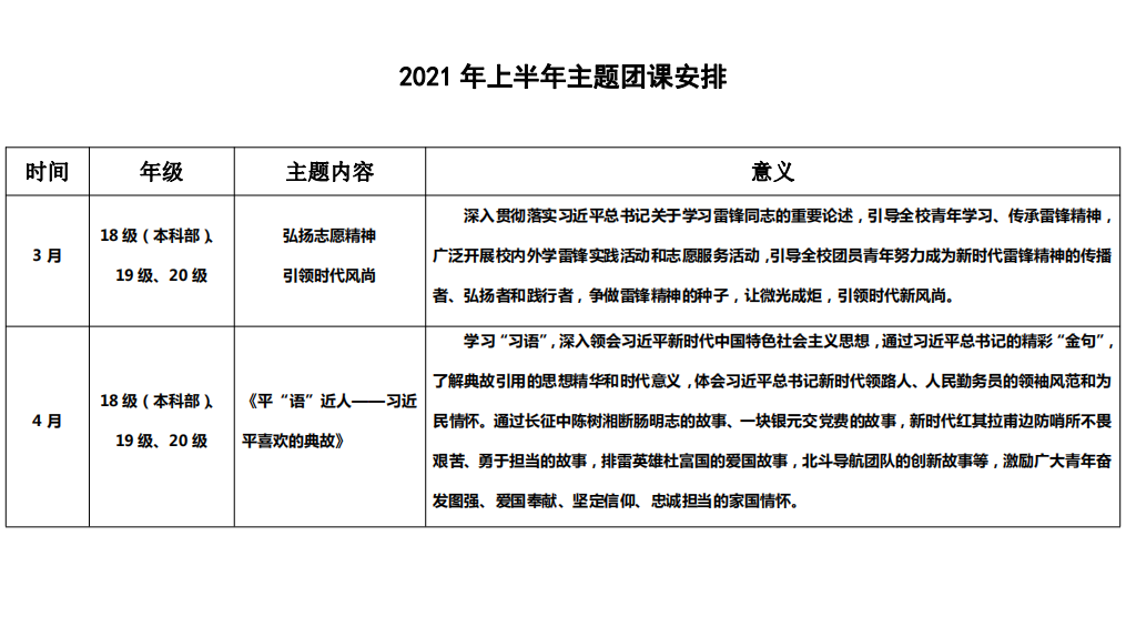 向善、勇于担当。校团委对 2021 年上半年主题团课的内
