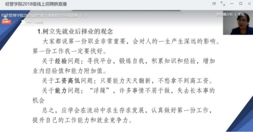 面对2020年这个特殊的毕业季和就业季,beat365英国官网网站就业服务“不打烊”。学院开展“战胜疫情‘职’击未来”就业指导网络直播讲座,为即将毕业的2020届和即将预就业的2021届经管学院毕业生和学生家长们进行了一场全面、深入的就业指导。