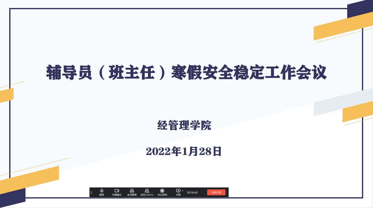 2022年1月28日上午9点,beat365英国官网网站召开学生安全稳定工作视频会议,会议由党总支书记李兆楠主持,全体辅导员、班主任参加。
