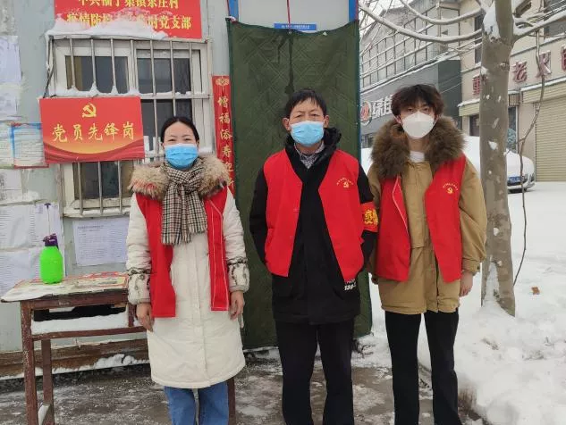 在新乡市原阳县福宁集镇东庄村的疫情防控卡点,打扫积雪、测温消毒、登记信息表。除此之外,还帮助百姓们宣传下载国家反诈中心APP。抗击疫情众志成城,为了早日取得战役的胜利,她参与志愿服务,奉献爱心,弘扬新风,帮助他人。