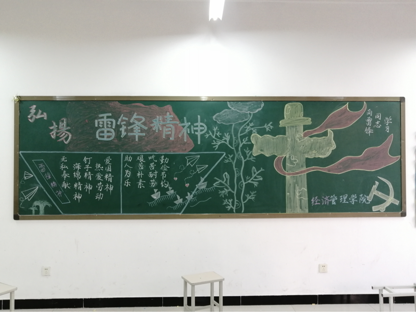 此次活动学生充分利用黑板报这一宣传阵地,对雷锋的生平事迹进行了介绍,也对新时代背景下的雷锋精神和内涵做出了自己的解读,生动形象地把雷锋精神呈现在同学们面前,让同学们充分了解雷锋、学习雷锋,传承雷锋精神。