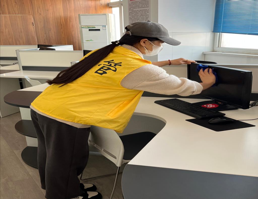 本次活动由校后勤处发起,院学生会带队,40余名同学各自带上扫帚、抹布等劳动工具前往操场集合,学院副书记到现场指导工作。经过分工之后,志愿者们纷纷穿上黄马甲,前往各自负责区域进行清扫。大家三三两两、相互配合,分别对卫生死角进行高标准清洁,擦黑板、抹桌子、拖地、擦玻璃……一切井然有序进行着。经过两个多小时集体劳动,图书馆、实训楼、办公楼各个角落焕然一新。