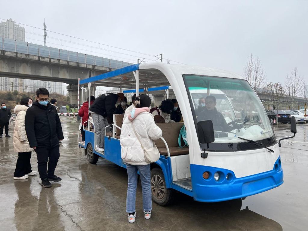 此外,张昂老师开着摆渡车、带队志愿者往返“校园南门口—铁炉站C站口”,帮助返校同学运送行李。