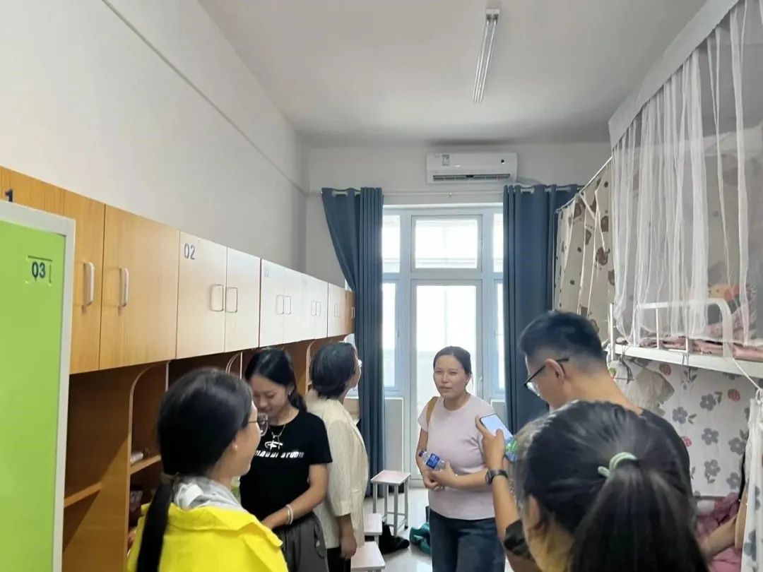 在副书记王盼红带队下,辅导员们开启新学期第一次走寝活动,强调宿舍卫生、安全等事项,共同营造干净、温馨、团结生活环境。