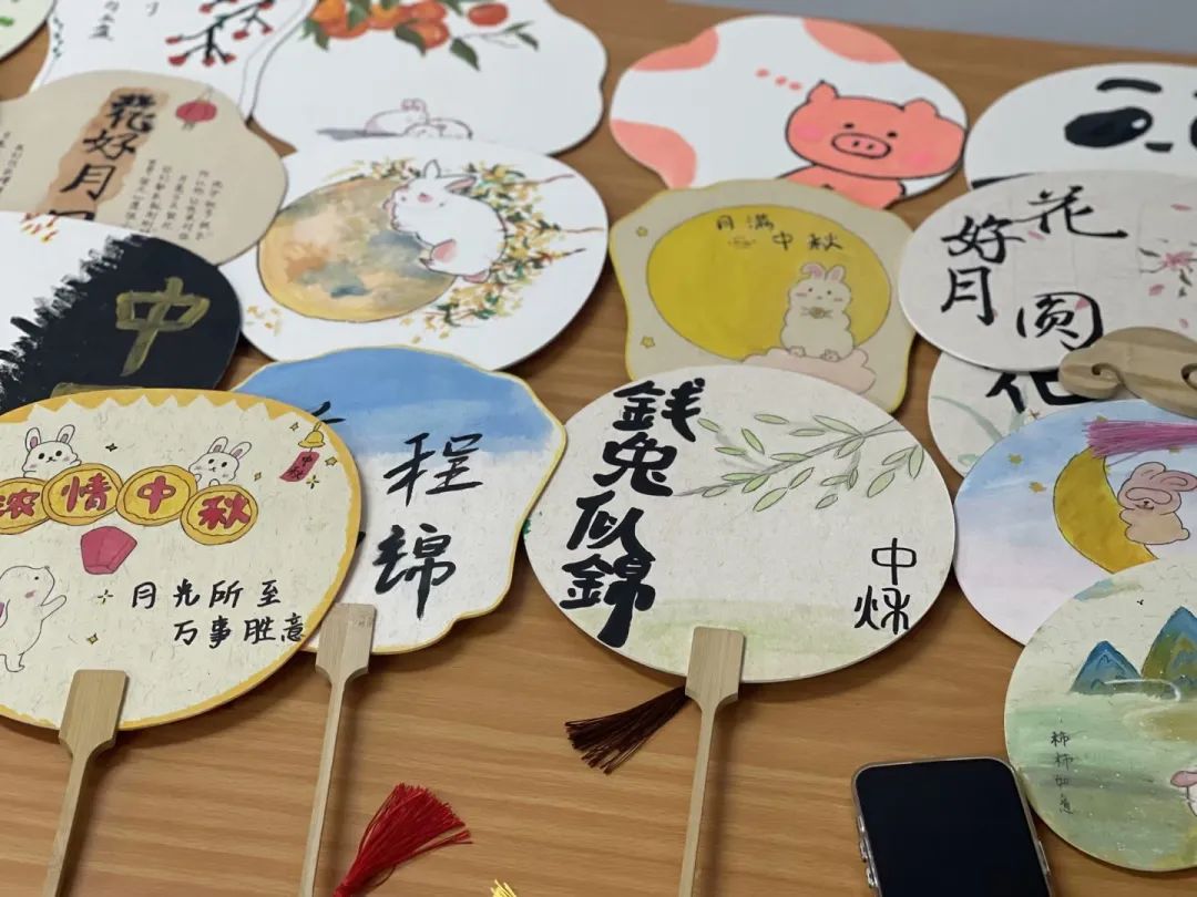 同学们充分展现了自己的创意和艺术天赋。在扇子上绘出只只皎洁玉兔,于宫灯之上绽出朵朵幽香桂花.....学生深刻了解了人类优秀文化的共性和追求美好生活的共同信念。同学们把自己对中秋的祝福和思念化为文字。每个人都用心地书写自己喜爱的中秋诗词,将其制成书签,这不仅是对传统文化的崇敬,也是对中秋节的真挚表达。