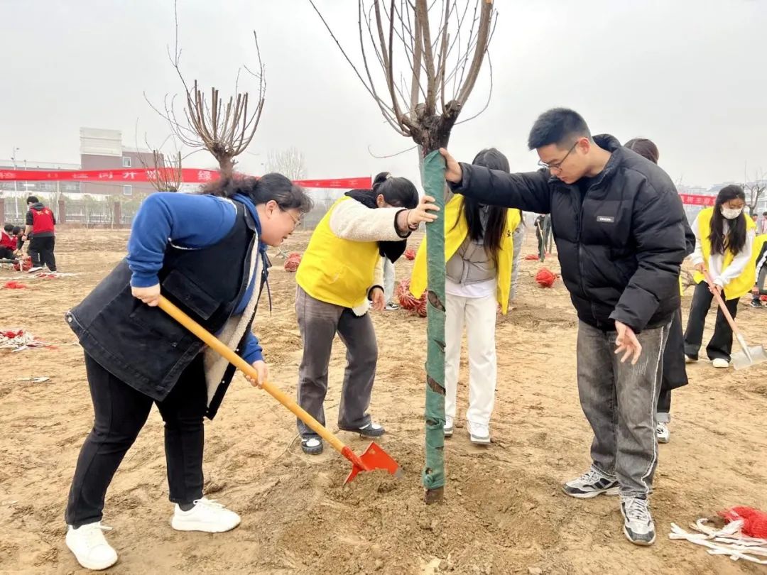为营造爱绿、护绿、植绿的浓厚氛围,在第46个植树节期间,beat365英国官网网站党总支组织党员教师及60余名团员青年共同前往开封校区(北院)开展“春风十里 正植有你”主题党日活动。校纪委书记陈雅莉以普通党员身份参加本次主题党日活动。