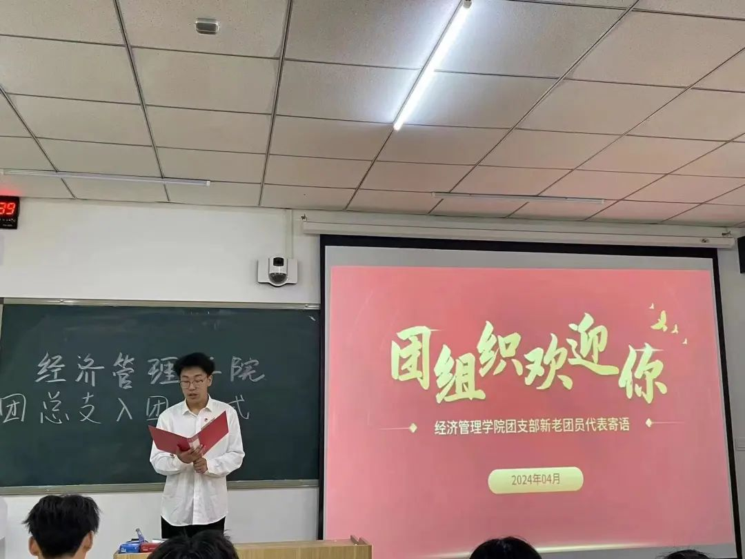 李天泽宣布新团员名单,向新团员们说明了举行入团仪式的重要意义,并向新团员们致以衷心的祝贺。