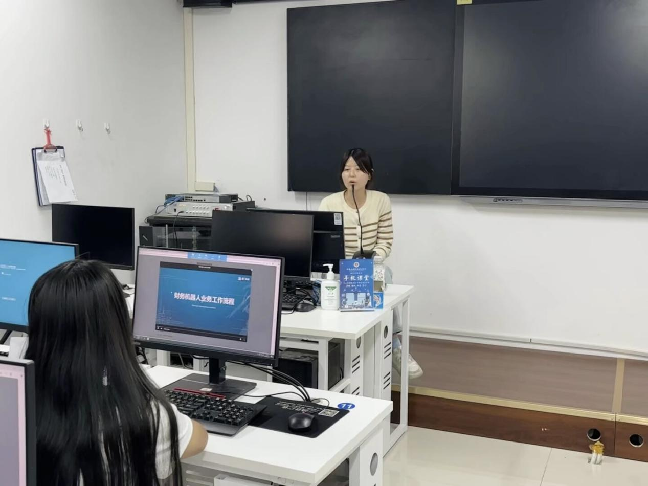 实训基地初体验。9月30日上午,在学生会志愿者带领下,2025级新生分批次、分专业参观了金融科技应用实训室、茶艺文化科普基地、财务仿真机器人实训室等实训教学场所。每个实训室由专业教师进行10~15分钟现场讲解,内容包括实训室功能、主要设备、开设课程、所能锻炼的专业技能、相关学科竞赛知识等。通过设备演示以及往届学生成果展示,增强新生直观感受。