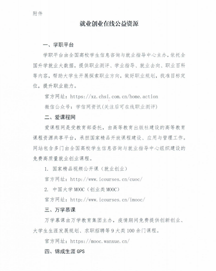 关于在新冠肺炎疫情防控期间推荐使用就业创业在线公益资源的通知